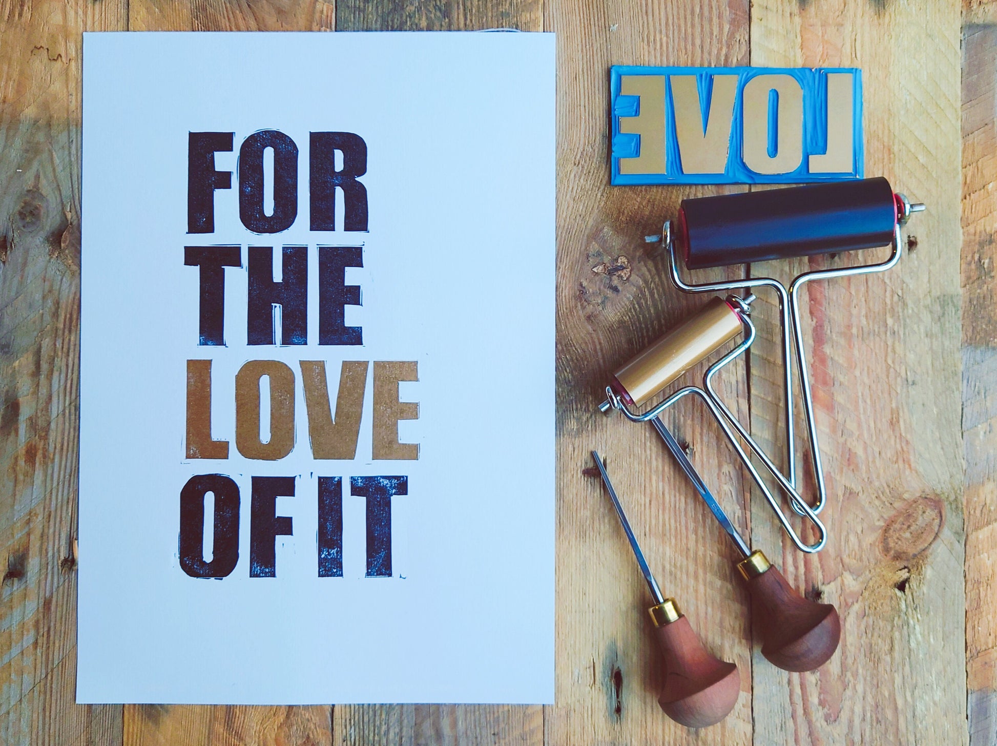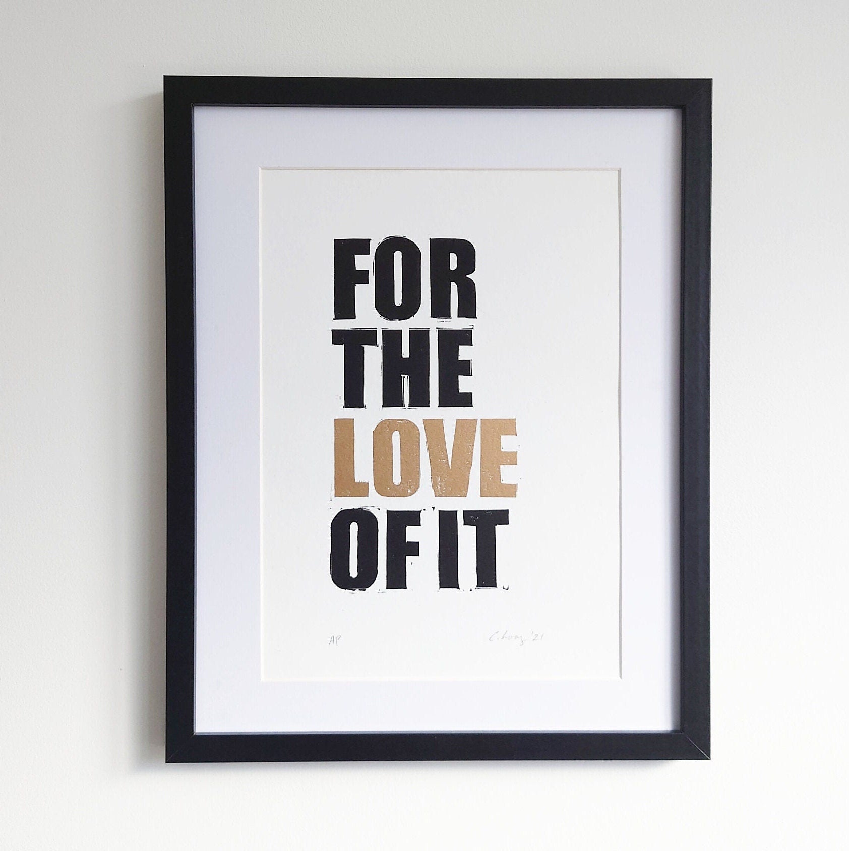 Original linocut print - 'For the Love of It' (Black and Gold) -Home Decor, Wall Art